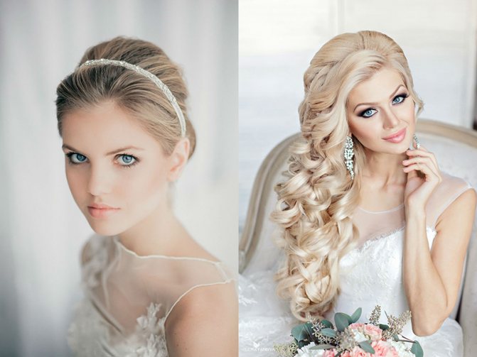 Прическа невесты напрямую зависит от длины ее волос. Ее можно украсить ободком, диадемой, красивыми шпильками, ленточкой.