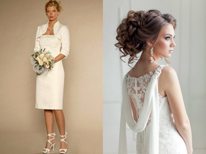 На фотографиях ниже, вы можете посмотреть примеры коротких свадебных нарядов и платья средней длины (белые, айвори и кремовых оттенков).