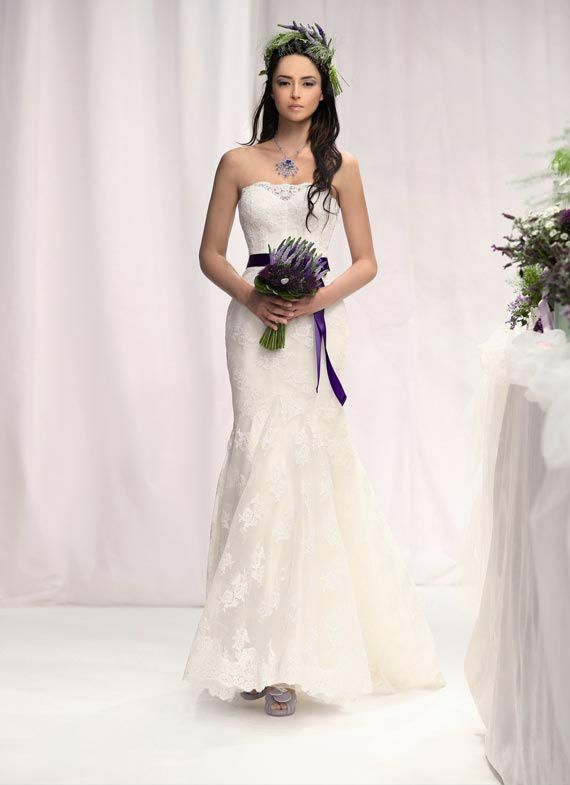 Это актуально также и для полненьких. Модель не сильно облегает бёдра (сглаживая их покатость) и плавно расширяется книзу. Гляньте, как неординарно и изысканно может смотреться фиолетовый пояс, дополненный оригинальным украшением на голове, а также туфлями, подобранными в тон.