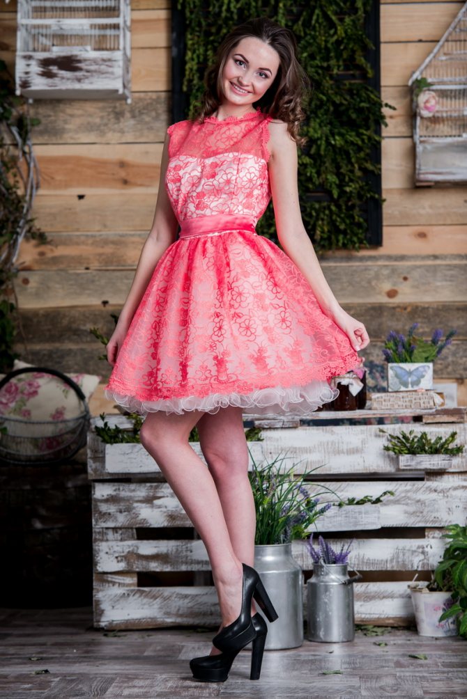 Платья на выпускной из гипюра для школьниц могут иметь модные трендовые силуэты: