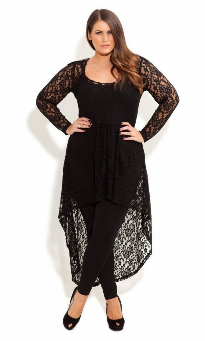 Модели с юбкой-трапецией могут быть украшены воротником в стиле 60-х. Платья для полных женщин часто сшиты силуэтом «труба», с длиной по колено или ниже. Этой же категории дам рекомендована туника, элегантно прикрывающая несовершенные части тела.