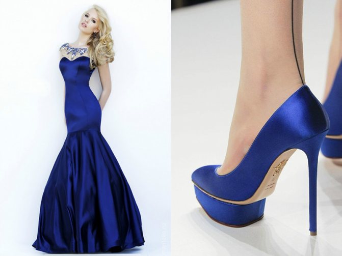 К платью «русалочий хвост» подойдут лодочки или полуоткрытые босоножки. Каблук обязателен – высокий или средний. Удобную обувь на плоской подошве (например, балетки) придется отложить в сторону.