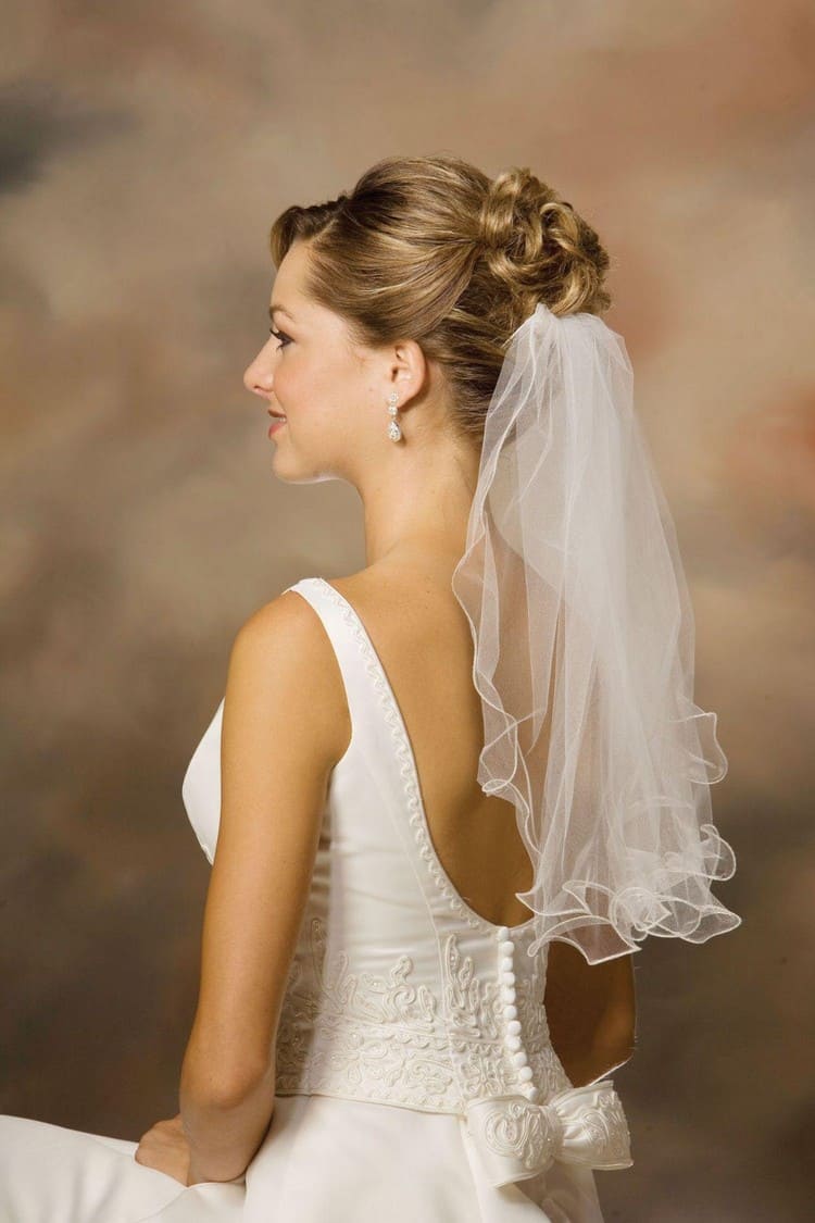 Если у платья длинный шлейф, лучше отдать предпочтение коротким разновидностям фаты – мантилье или вуалетке.