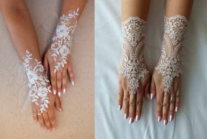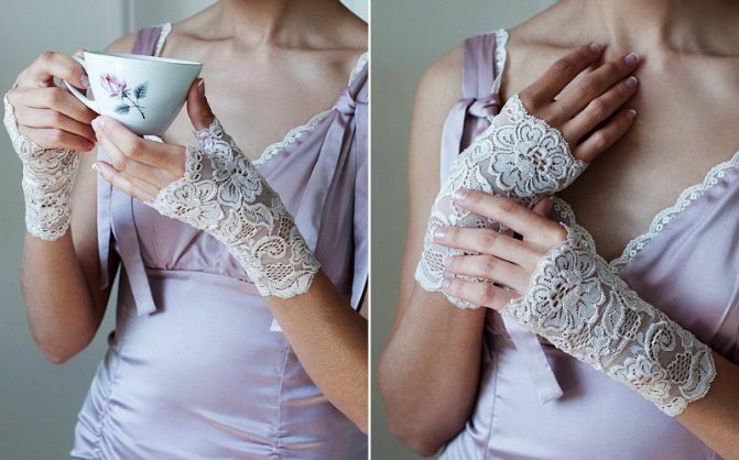 Теперь нужно решить, будут ли перчатки закрытые или лучше предпочесть митенки. Закрытый вариант выглядит очень элегантно, но создает массу неудобств во время регистрации и застолья. Кроме того, если невеста планирует сделать красивый маникюр, то закрытые перчатки скроют всю красоту. Причем, ноготки придется делать короткими, так как длинные ногти могут распороть ткань перчаток.