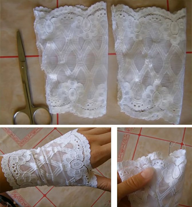 Девушки с узкими кистями и запястьями могут сшить просто ровный прямоугольный кусок кружева. Тем, у кого обхват кисти в самом широком месте и запястья отличаются, следует сшить коническую «трубу».