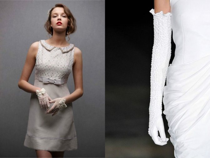 В XVII-XVIII веках все девушки и дамы благородного происхождения появлялись на публике в перчатках. Данный аксессуар означал принадлежность к высшему обществу. В наше время перчатки к вечернему наряду надевают только по самым торжественным случаям. К таким случаям, безусловно, относится и свадебная церемония.