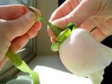 - Обрезаем бутон до нужной длины (примерно 2 см) и отделяем крайние лепестки, чтобы получился нежный небольшой бутон.