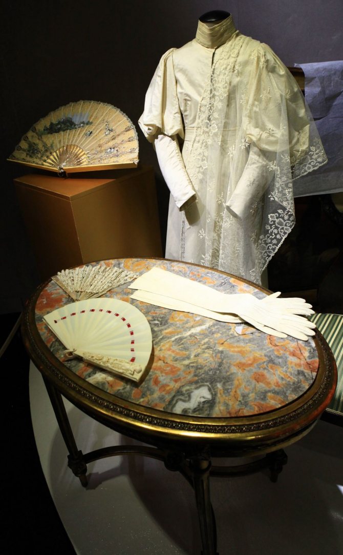 Тогда не было массового производства, поэтому всё шили на заказ. Одно из платьев, которое можно увидеть на выставке, сшито в 1914 году в Нью-Йорке, туфли сделаны из похожего материала. Кстати, для этого платья сшили и чулки, причем хранились они в специальных конвертах из того же материала.