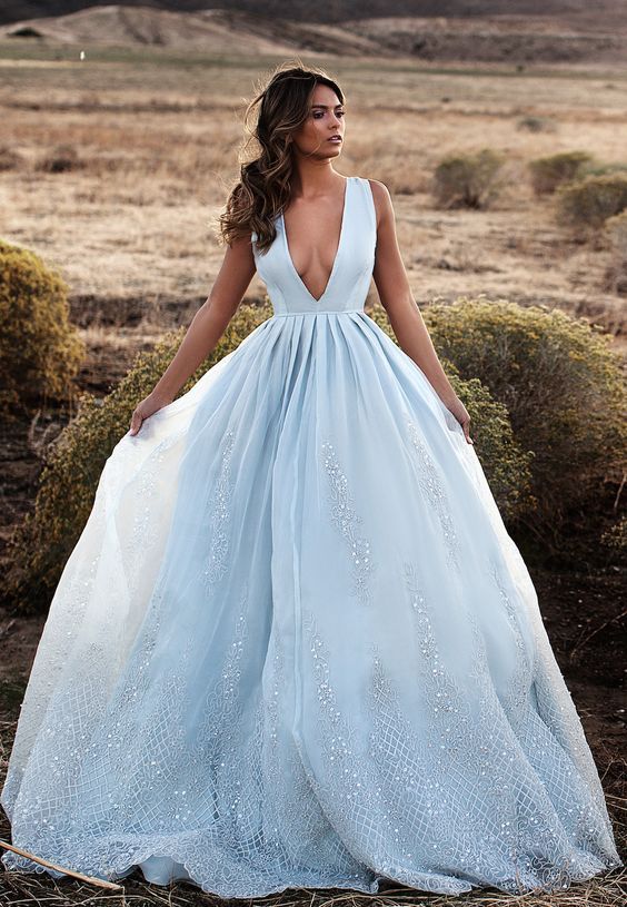 Согласно одной старинной свадебной традиции, на невесте в этот день должно быть нечто новое, старое, одолженное и голубое. И если раньше этим голубым была подвязка на ногу, декорация букета и т. д., то сегодня модельеры предлагают полностью голубое платье для невесты.