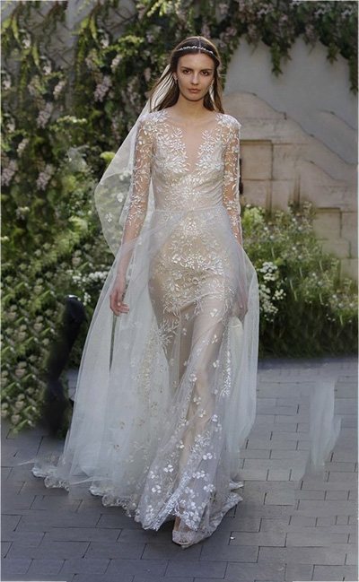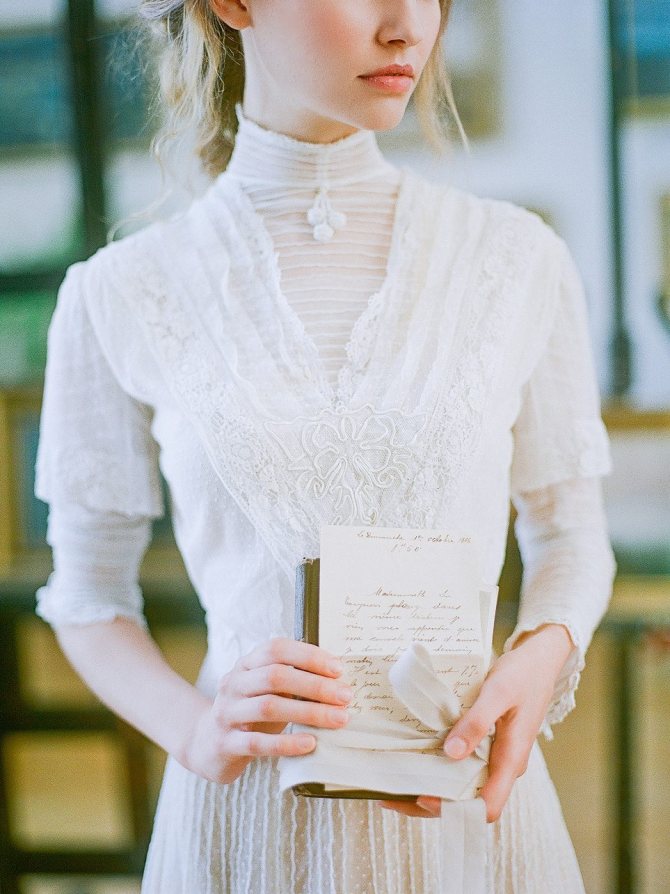 Идеально подойдет романтичным невестам, которым близка стилистика викторианской эпохи. Объемные плечи, жемчуг и кружево, нарочито длинные ниспадающие рукава, воротники, многослойные прозрачные ткани — в этом сезоне винтаж выглядит как никогда роскошно и богемно.