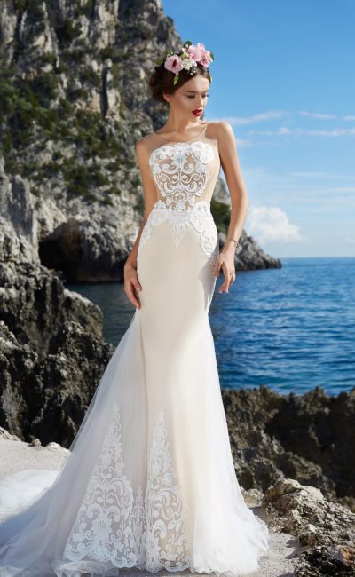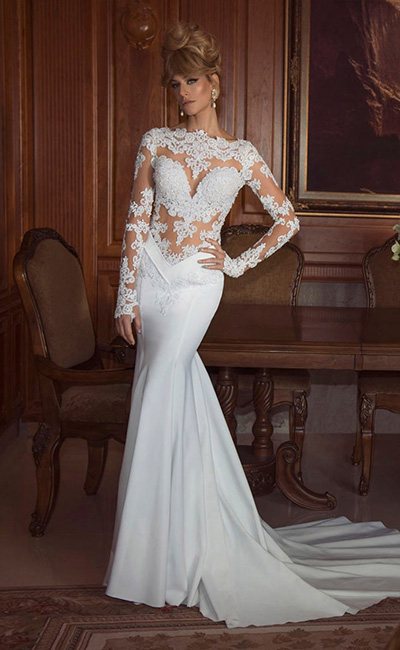 Раскрыть привлекательность женской фигуры помогут обтягивающие полупрозрачные свадебные платья, которые все больше пользуются популярностью среди будущих невест. Кружевные и ажурные вставки делают наряд соблазнительным, но не вызывающе оголенным.