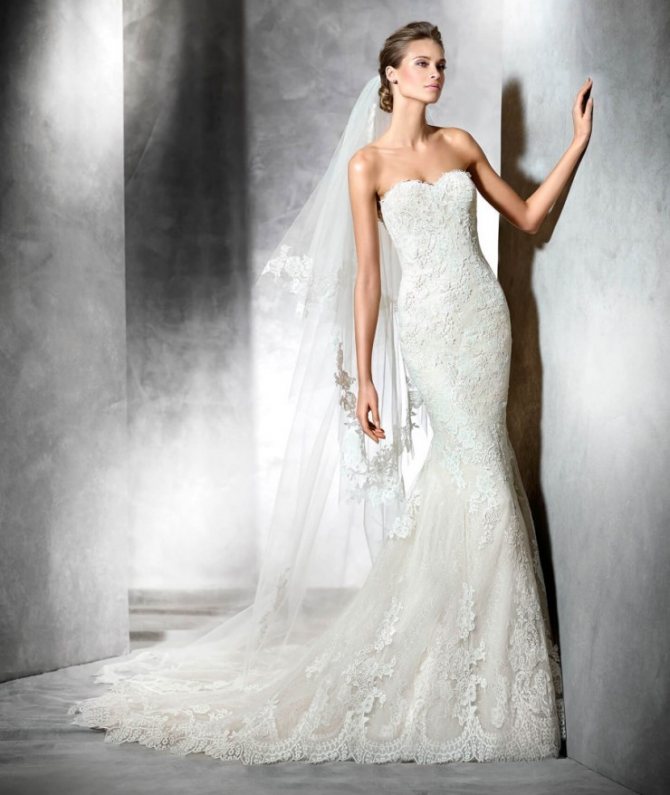 Все чаще можно увидеть звезд кино, выходящих в свет в облегающих нарядах типа «рыбка» или «русалка». Свадебные платья такого фасона также будут популярны в будущем сезоне. Такие наряды имеют длину до пола и прекрасный, приковывающий к себе взгляды шлейф. Без сомненья фасон свадебного платья «русалка» является одним из самых сексуальных и соблазнительных. Невеста в платье-рыбке, несомненно, будет чувствовать себя настоящей королевой, держаться прямо и гордо. Платье русалочка или «рыбий хвост» узкое сверху и расклешенное ниже колена сделает свадебный образ немного загадочным и в меру сексапильным.