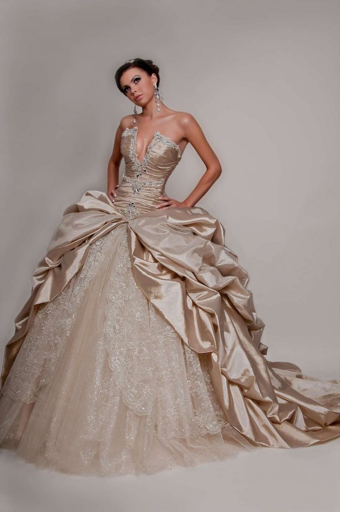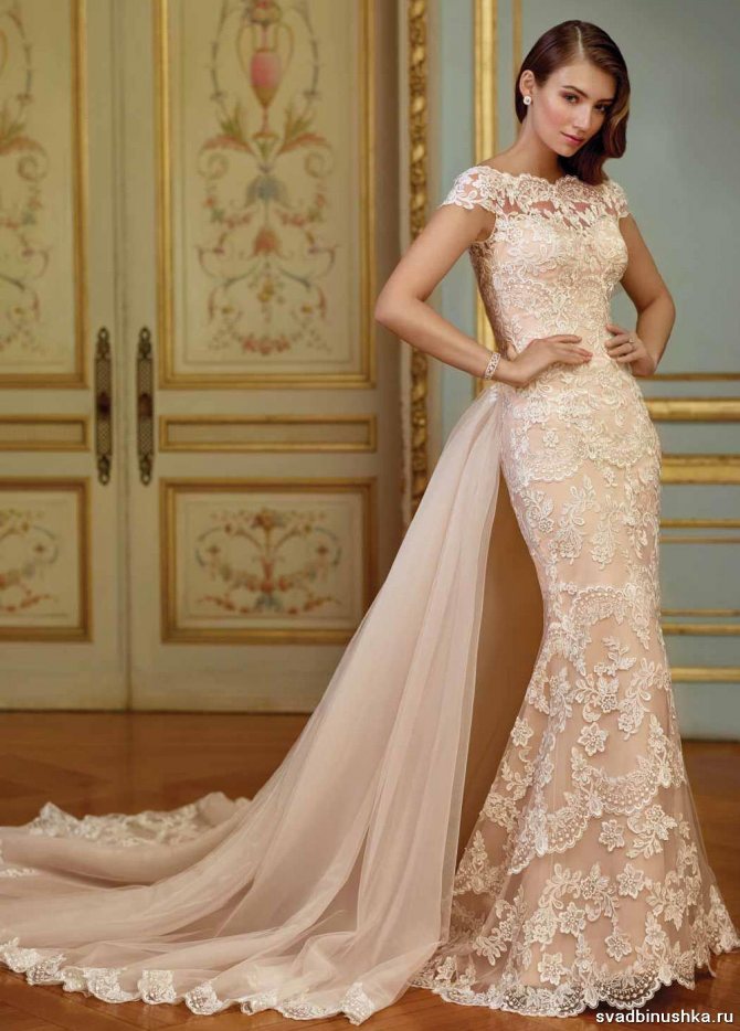 - Шампань. Чем темнее цвет кожи новобрачной, тем более красивой будет она выглядеть в наряде этого оттенка.