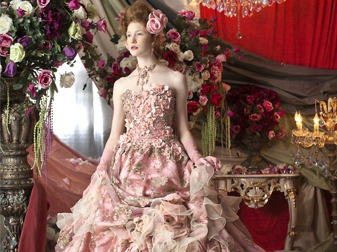 Оно может быть невероятно пышным, с обилием воланов, складок, уровней. В нем невеста напоминает принцессу из сказки, где ее ждет встреча с принцем.
