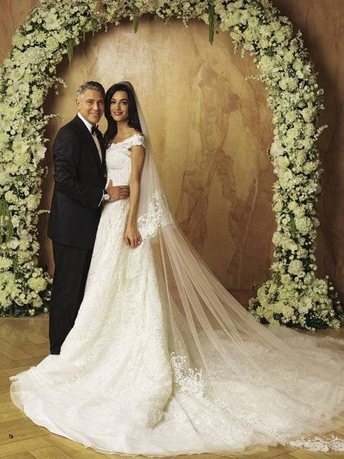 - Лаконичный свадебный наряд Амаль Клуни от Оскара де ла Рента по цене 380 тысяч долларов.