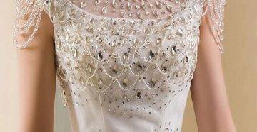 Среди декоративных элементов дизайнеры отдают предпочтение бисеру, ручной вышивке или жемчугу.