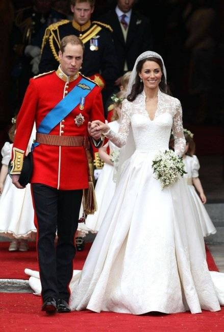 Действительно изюминкой является платье Кейт Миддлтон, ныне уже жены принца Англии — Уильяма. Были использованы самые дорогие ткани, в том числе французская Шантилья, английское кружево, атлас цвета слоновой кости, белый атлас Газар. Дизайнером этого чуда является Сара Бертон. Безусловно, она создала чудо, которое войдет в историю как одно из самых дорогих и самых известных платьев в истории моды.