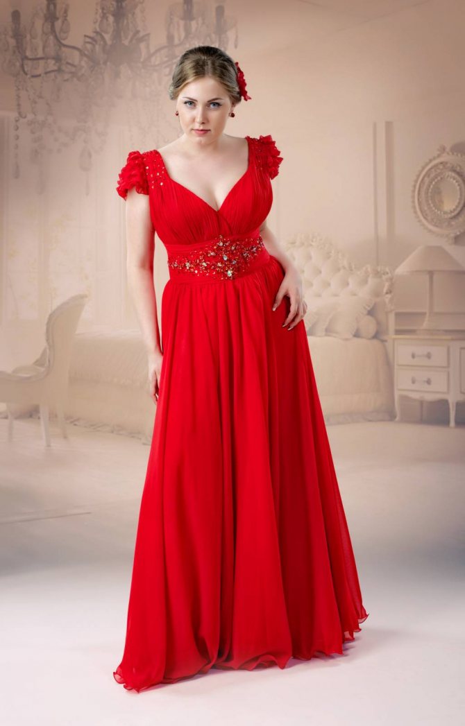 Красный цвет не полнит, наоборот, с его помощью легко смоделировать красивую фигуру. Грамотно подбирая отделку, можно визуально удлинить силуэт, перенести акцент на грудь, талию или длинные ноги.