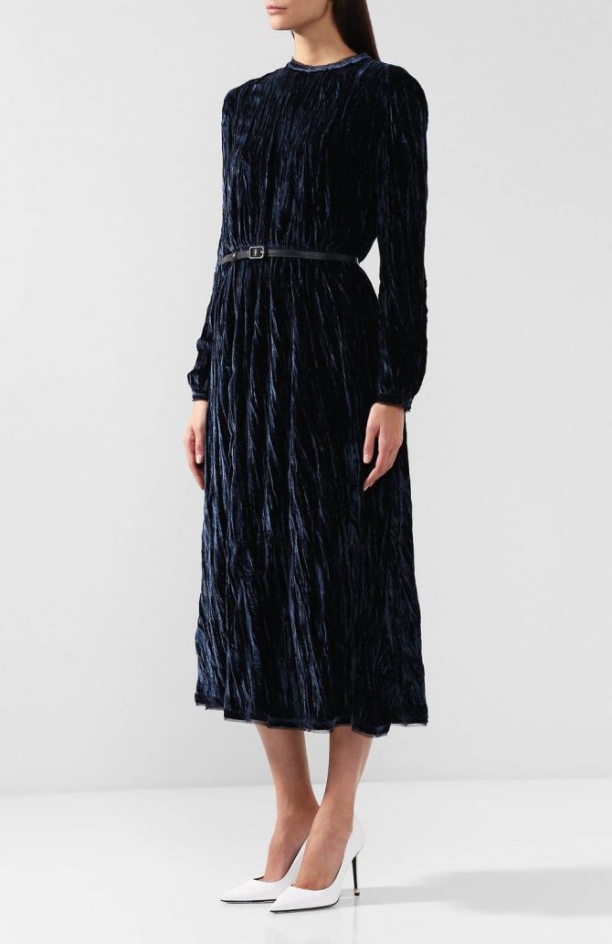 Благодаря струящейся фактуре бархатные платья подчеркивают женственность и худобу. При правильном выборе кроя маскируют недостатки фигуры. Что касается отделки, в моде элегантная лаконичность: наряды в пол выглядят самодостаточно без помпезного декора.