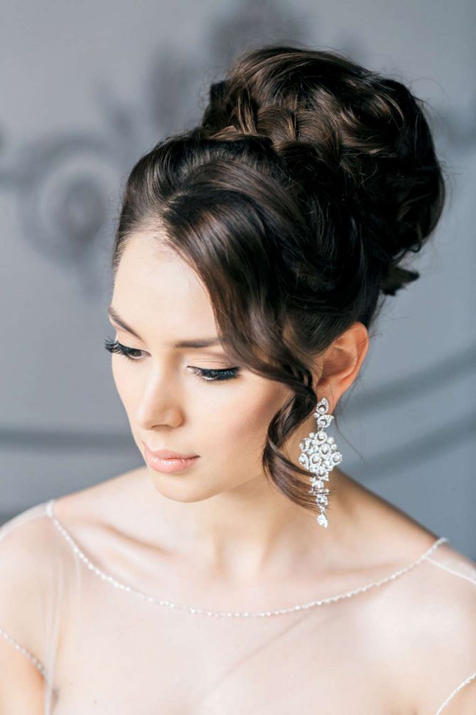 Некоторые невесты, размышляя о свадебной прическе с начесом, переживают, что взбивание прядей негативно сказывается на состоянии волос, ломает их и делает секущимися. Однако, это зависит от руки мастера и того, как он будет делать начес. Хороший мастер просто не может навредить волосам. А теперь можно посмотреть примеры свадебных причесок с начесом.