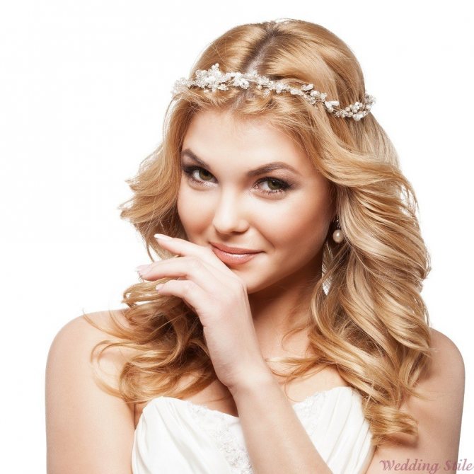 Она так походит на корону. И перед вами уже сказочная принцесса. Хорошо, если прическа не особенно объемная. Крупные накрученные локоны – то, что надо. Главное, чтобы диадема на волосы села прочно.