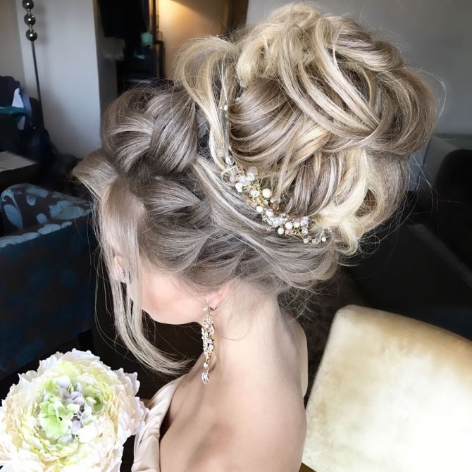 Блондинкам и русоволосым лучше сделать пучок из локонов, который придаст нежность и романтизм.