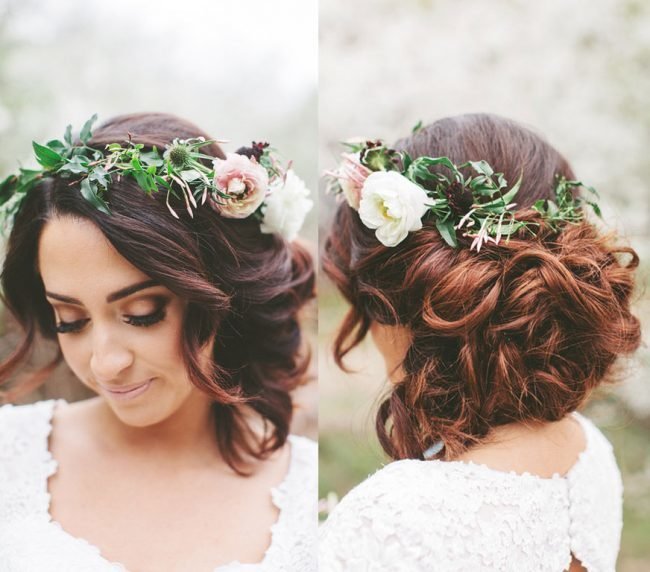 Венок из цветок — прекрасное украшение свадебной прически Цветами также можно украсить хвост или пучок