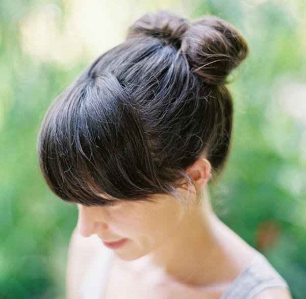 Пучок может быть выполнен, как аккуратно, так и с выпадающими небрежными прядками.
