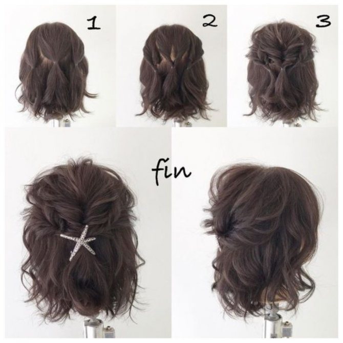 - ШАГ 4: Используем невидимки в тон волос, чтобы надежно зафиксировать прическу;
