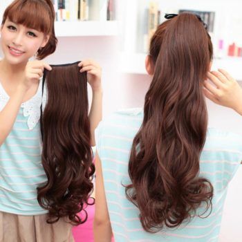 Завив натуральные и искусственные волоски в шикарные локоны, достаточно собрать их в пышный хвост, чтобы укладка выглядела как можно естественнее.