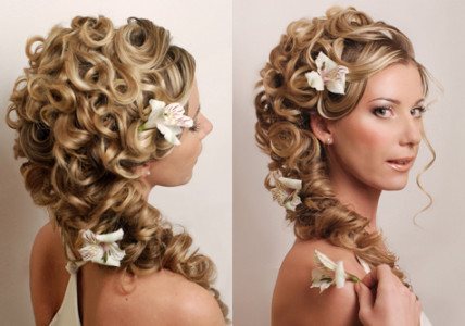 Парикмахеры завивают волосы на крупные бигуди, используя цветы, декоративные заколки, обручи, ленты, диадемы. Кроме того, с помощью накладных волос создаются косички разнообразного плетения.