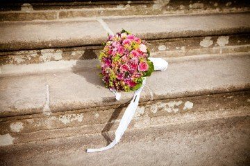 Небольшие композиции можно составить из бутонов различных расцветок. Желтый и оранжевый цвет фрезий придаст белым альстромериям веселые и жизнерадостные нотки. Такие букетики можно использовать на летних и осенних свадьбах. Красные и розовые бутоны, разбавленные зеленью, подойдут для свадьбы в стиле кантри и цыганского бохо.