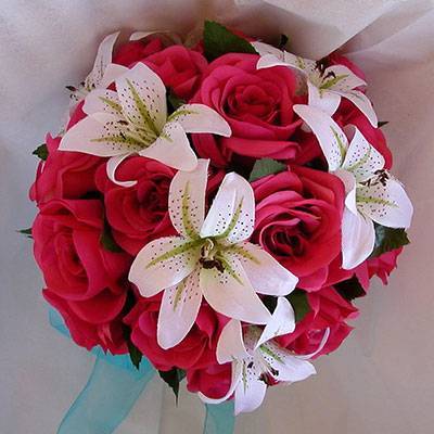 Букет, составленный с участием роз и лилий – это самое популярное сочетание, используемое на свадьбах. Они хорошо соответствуют друг другу: нежные, женственные, имеют множество расцветок и сортов.