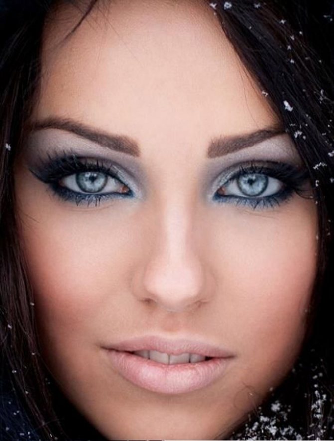 - Такой макияж не будет слишком заметным, но в то же время позволит сакцентировать внимание на голубых и необычных глазах, сделав их визуально ярче.