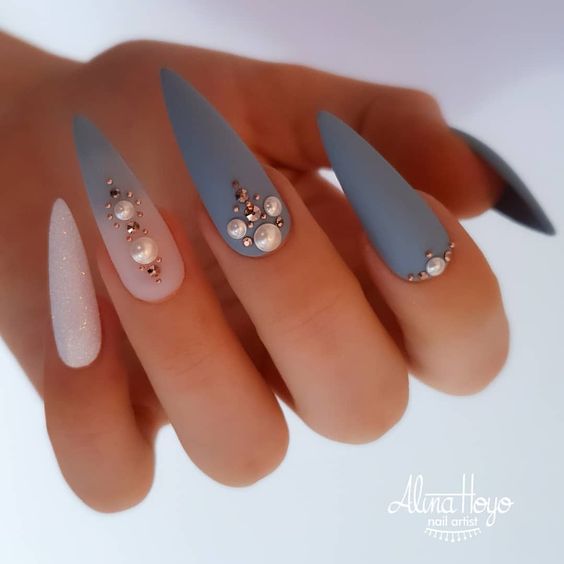 Чаще же матовый нюд используется в качестве основы для последующего его украшения стразами и блестками. Тогда маникюр начинает играть всеми красками и создает праздничное настроение.