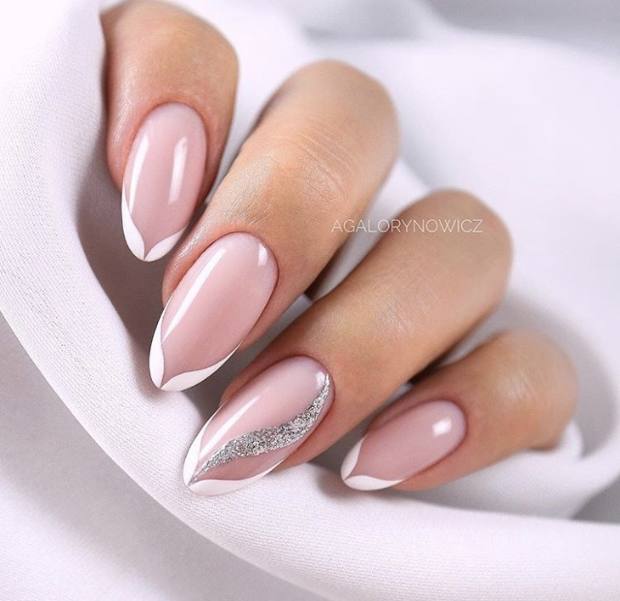 Если сомневаетесь, и не знаете какой дизайн выбрать для свадебного торжества — смело останавливайтесь на классическом белом френче. В этом сезоне он особенно популярен в молочных, бежевых или бледно-розовых оттенках.