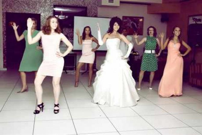 Идеально время для танца — вторая часть банкета, а именно промежутки между обязательными обрядами и поздравлениями. Как правило, в это время начинается свадебная дискотека и безудержные пляски. Например, танец от подружек будет актуален в середине программы: