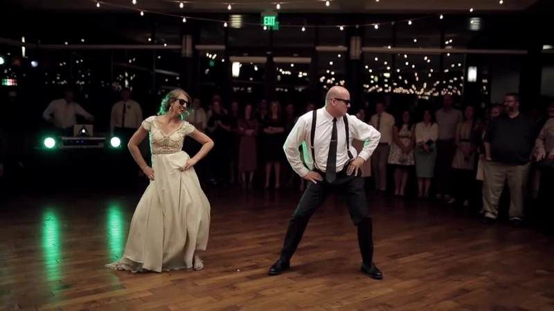 Если вам повезло, и у организатора вашей свадьбы богатая фантазия, то он придумает, как разнообразить свадебный танец. Например, можно взять сценарий какого-нибудь мультика или фильма, и создать небольшую постановку, дополнив ее хореографией. Вот прекрасный пример того, как невеста, жених и отец исполнили шуточный свадебный танец.