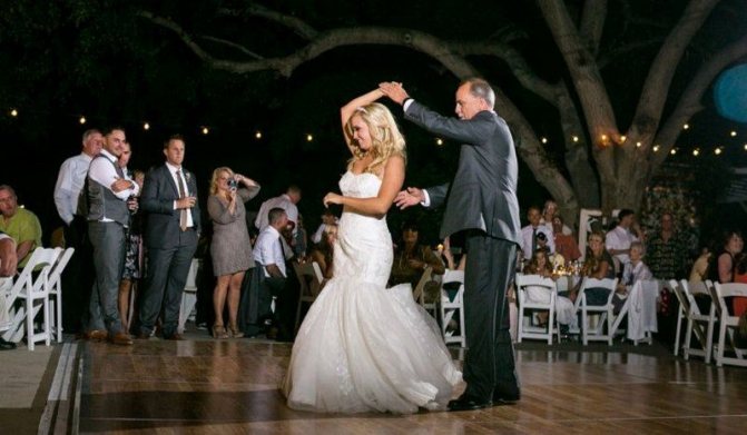 - Предварительно нужно посоветоваться с отцом, готов ли он танцевать на свадебном торжестве. Если папа не готов к танцу, то ему будет неловко от предложения ведущего станцевать с невестой.