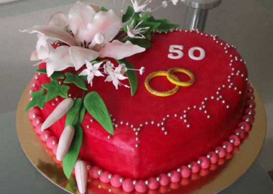 Торт даже можно изготавливать многослойно-вкусовым, так получится удовлетворить вкусы всех гостей. Пусть каждый из слоев будет нарезан в отдельности и характеризовать разнообразность вкусов супружеской жизни, ее горькие и сладостных моменты. Начинку сделать фруктово-желейной, сливочно-ореховой, вафельной, кремовой, плодово-ягодной.