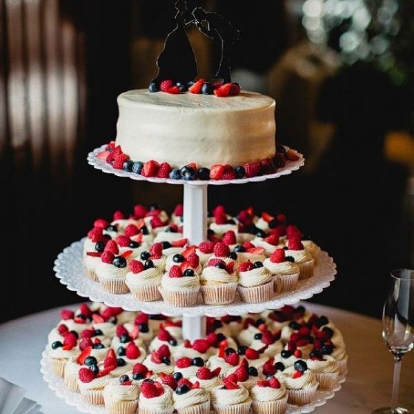 Из капкейков на бумажную годовщину свадьбы можно соорудить пирамиды или композиции для украшения стола в соответствии с дизайном, стилем и цветом оформления торжества.