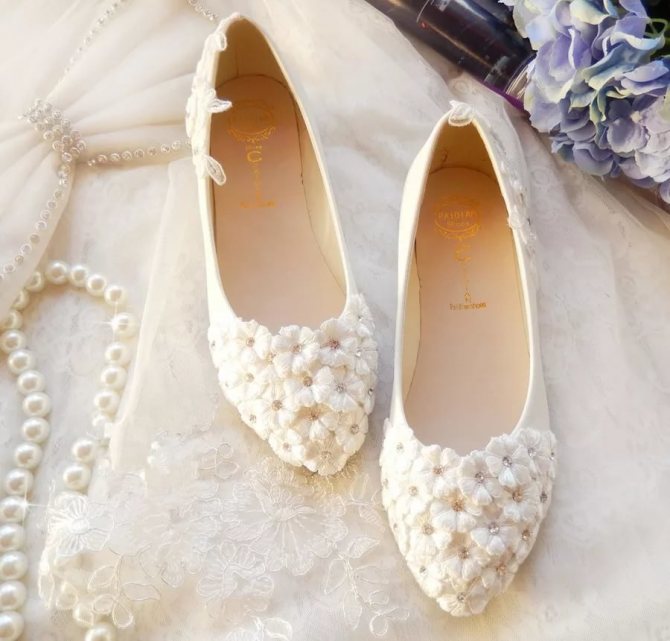 - модели на плоском ходу, в виде мокасинов, балетки или кожаные тапочки прекрасно подойдут беременным невестам, которым нельзя затруднять процесс кровообращения.