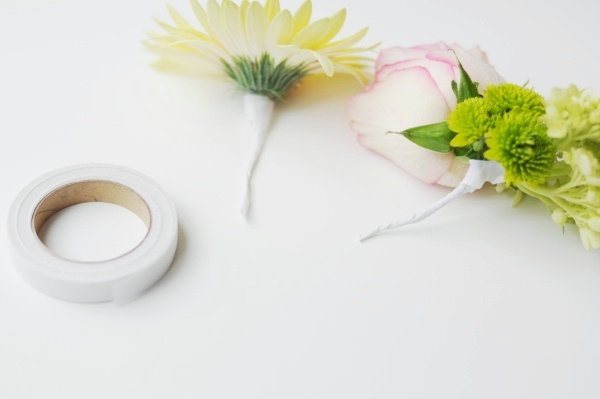 Формируем цветочный браслет, обматываем тэйп лентой.