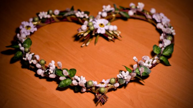 Его можно сплести из живых растений, собрать из искусственных бутонов на основу любого типа – проволоку, ободок для волос. Главное – украсить венок лентами. Их должно быть много, разных, контрастных цветов, символизирующих радугу, однотонных или с национальными рисунками, вышивкой.