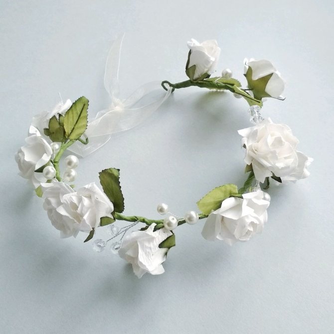 Таким образом может быть создан свадебный венок или же аксессуар для любого другого мероприятия. Инструкция по его изготовлению довольно проста и не вызывает сложностей. Нужно лишь строго соблюдать определенную последовательность действий.