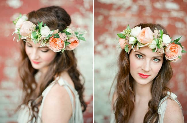 - Молодым девушкам больше идут венки на голову из живых цветов нежных пастельных тонов.