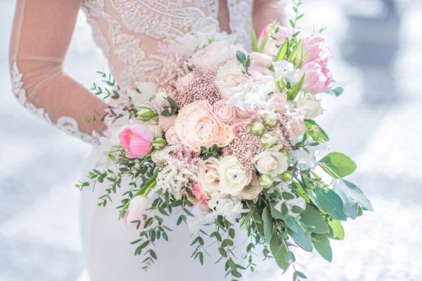 Очень важной и красивой деталью образа является свадебный букет. Он, так же как и аксессуары, создает а образ воедино