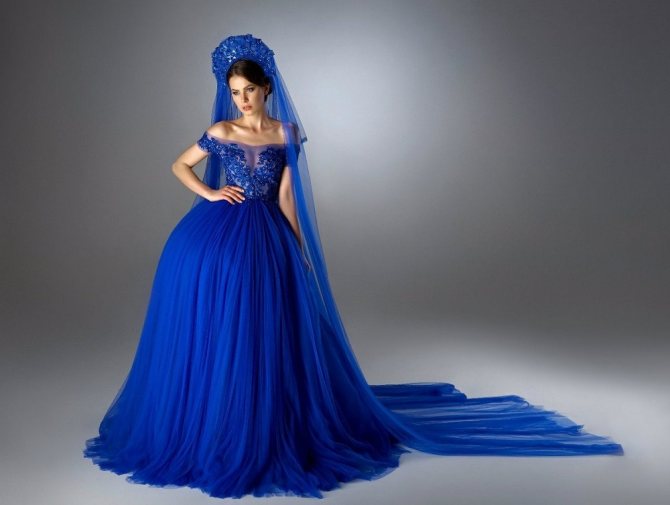 Синие свадебные платья: актуальные оттенки, фасоны, ткани