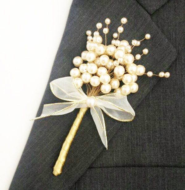 И, если в образе невесты жемчужинам найти место совсем несложно, то жениху достаточно будет жемчужной бутоньерки, зажима для галстука или запонок. Гостям стоит на входе в зал бракосочетания презентовать миниатюрные аксессуары. Девушкам – ленты с жемчугом на руку, парням – бутоньерки. Будут это подлинные или искусственные перламутровые сферы? Зависит от щедрости молодых, бюджета и размаха праздника.