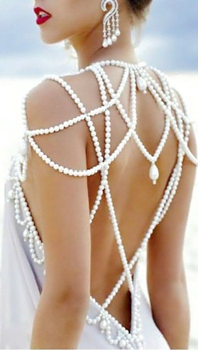 Платья, декорированное перламутровыми бусинами, смотрится элегантно, нежно и роскошно. Эксклюзивные модели можно купить или взять напрокат у дизайнеров, а можно попробовать украсить россыпью жемчужин самостоятельно.